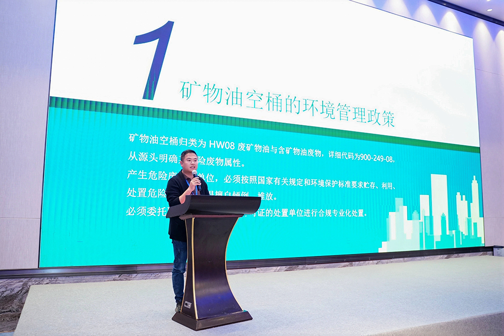 会上,尚科环保围绕《润滑油空桶的环境管理要求》展开专题汇报,强调润滑油空桶作为危险废物(HW08类,详细代码900-249-08),其合规处置是企业必须严守的环保红线。从贮存场所标准化建设,到危险废物转移全流程追溯,从运输单位到处置企业持证运营,尚科环保通过系统化管理简介,为行业合规处置提供操作指南。同时,企业特别警示违规处置面临的百万级罚款与刑事责任风险,以典型案例敲响环保警钟。